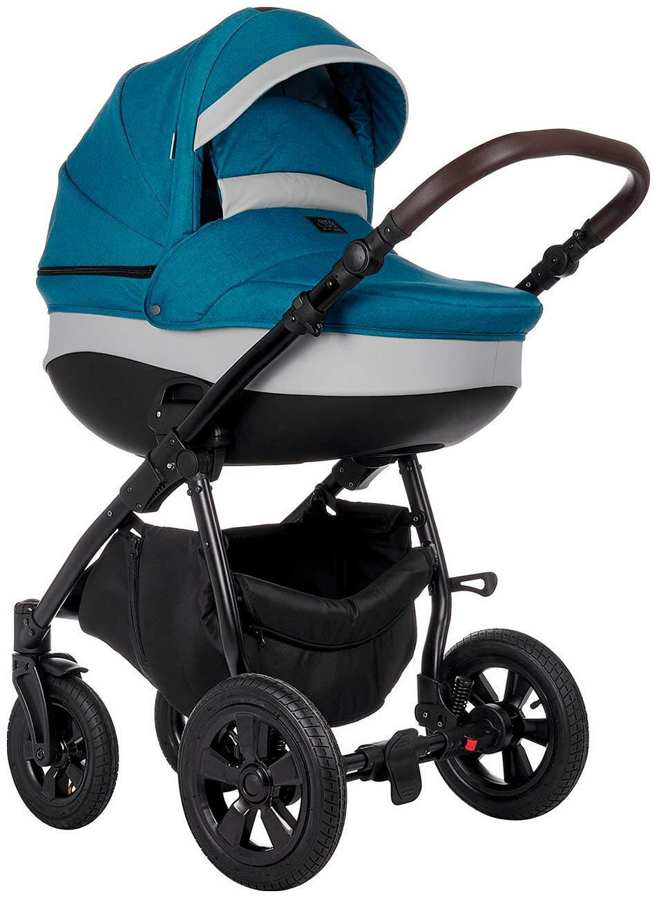 | Плюсы: | вентиляция в новорожденном блоке, практичный материал, пружины с регулировками, кожаная ручка, большой бардачок для покупок. |