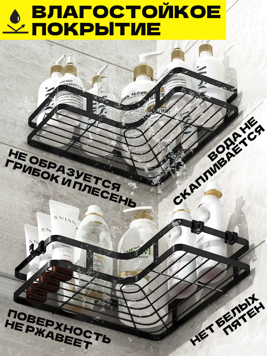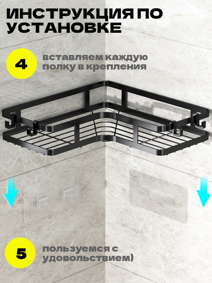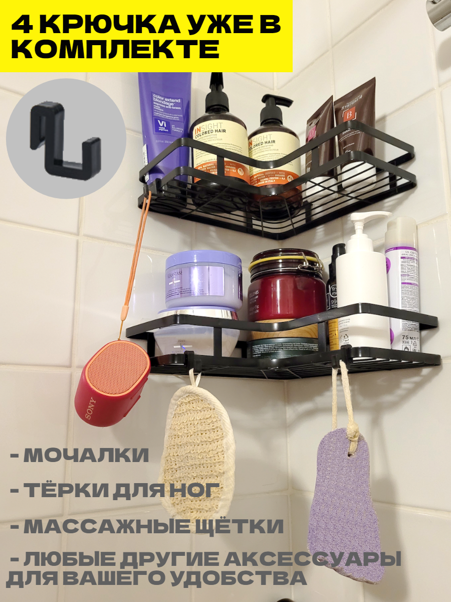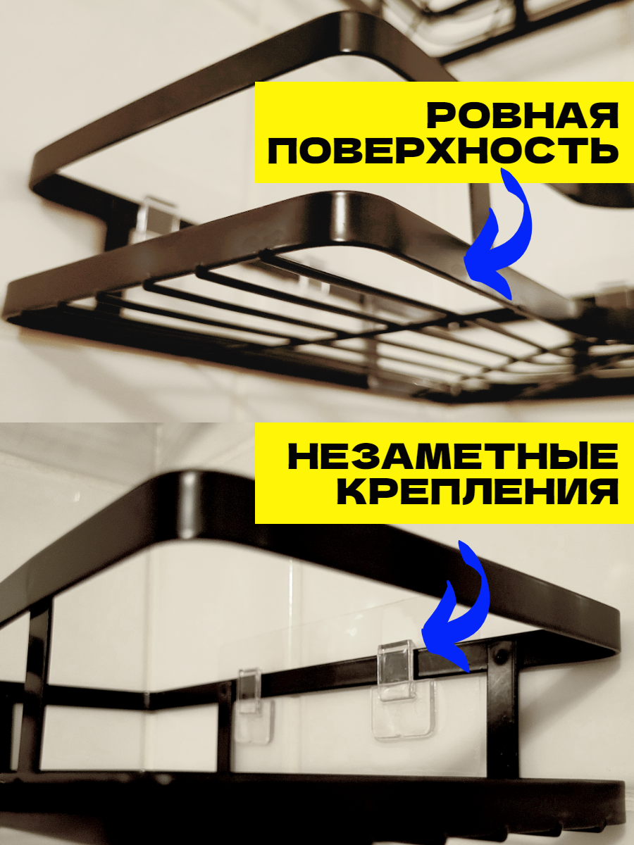 Полка для ванной угловая без сверления на липучках черная металлическая 2 шт интересное: