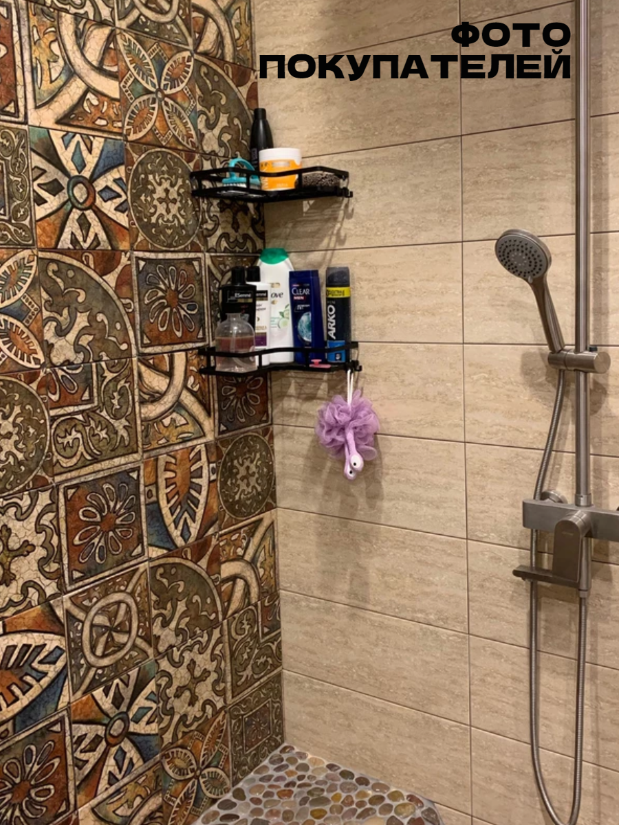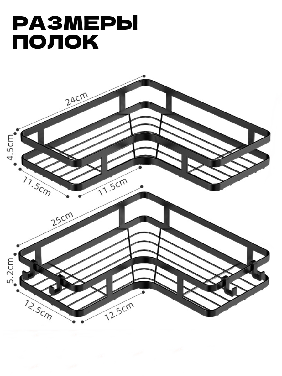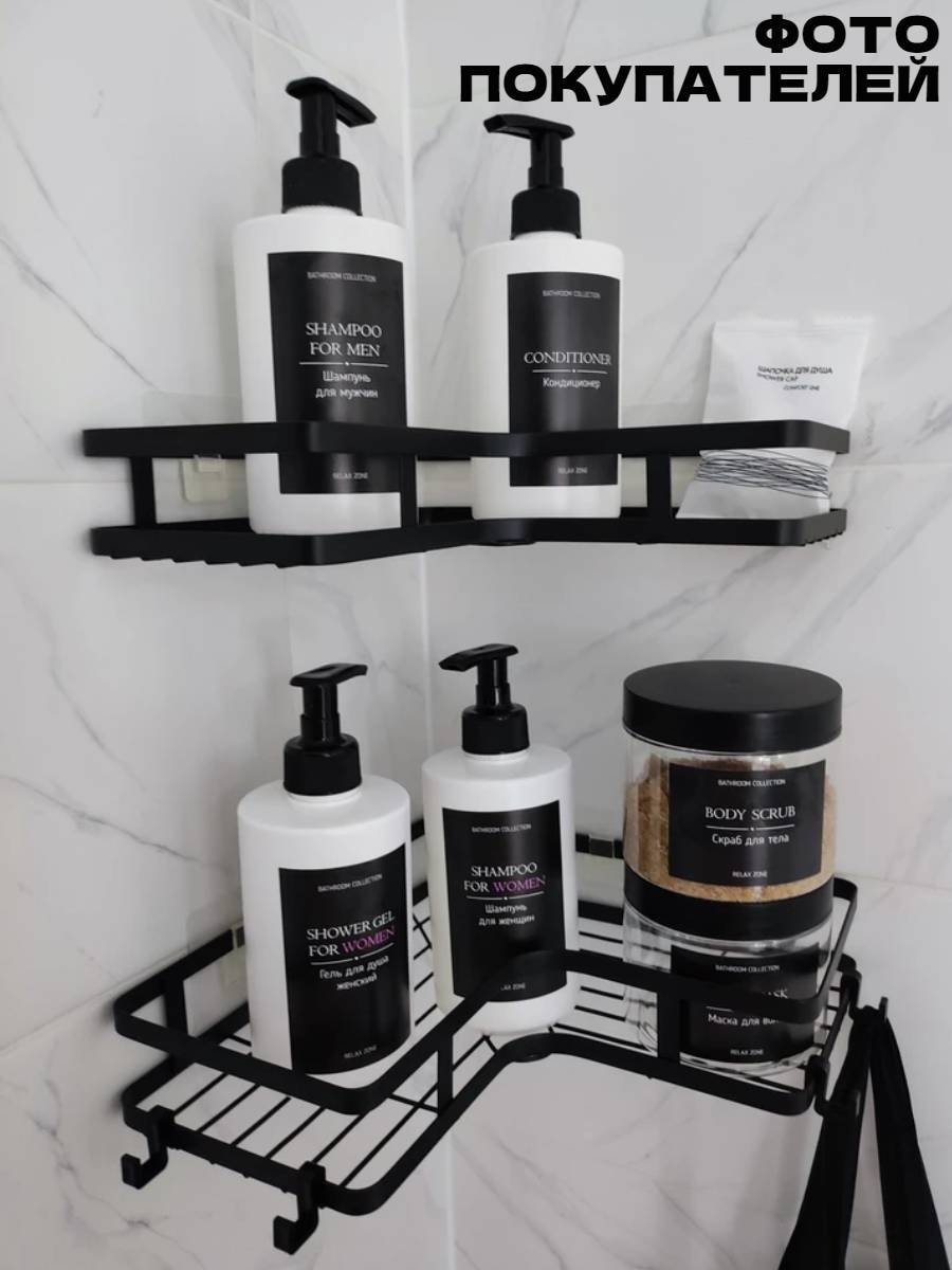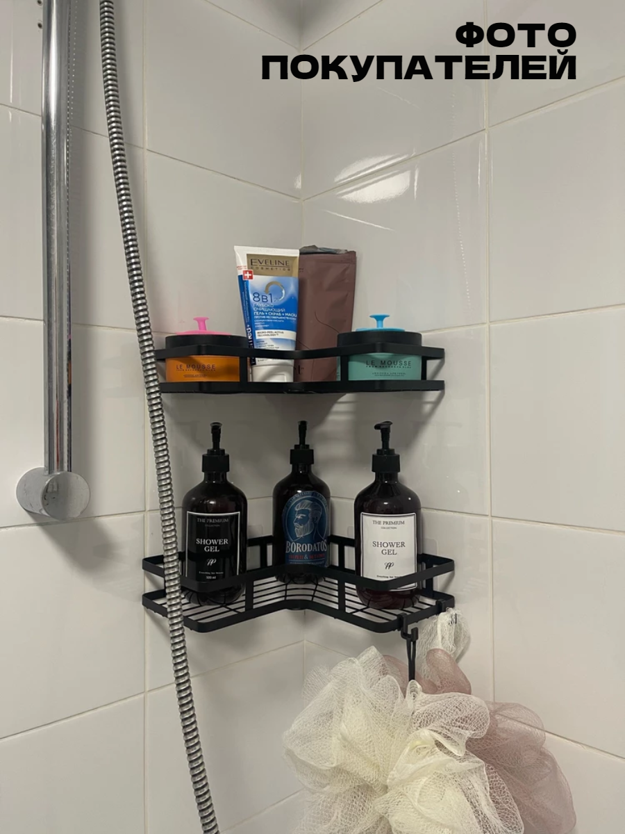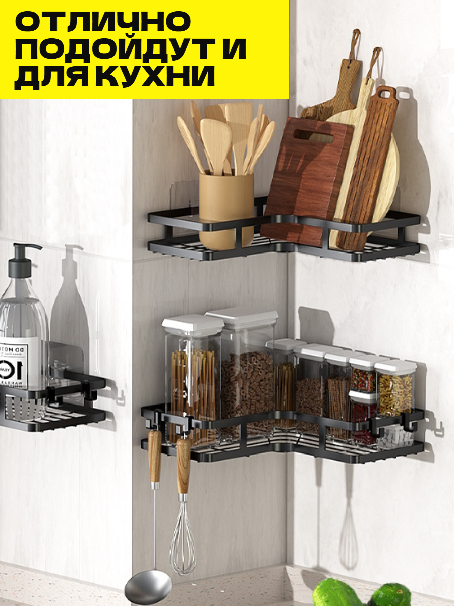 Полка для ванной угловая без сверления на липучках черная металлическая 2 шт интересное: