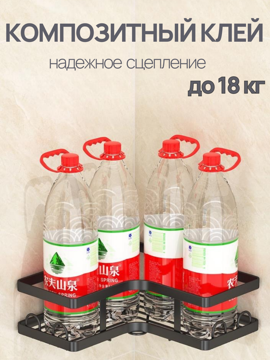 Угловая полка для ванной комнаты без сверления черная 1 шт в комплекте