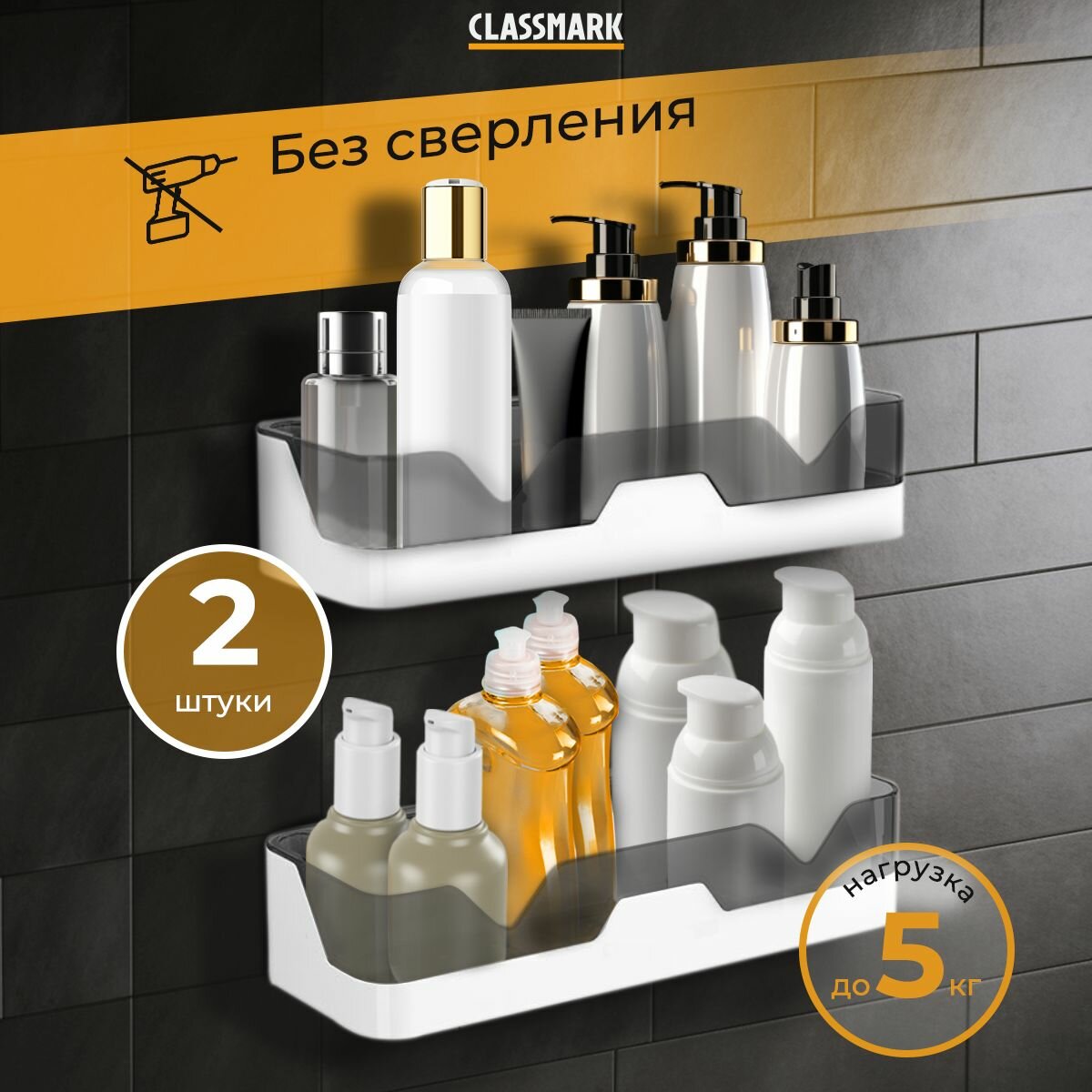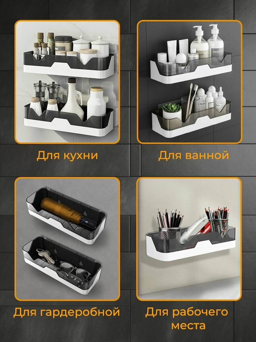 Полка для ванной комнаты Classmark органайзер для кухни и гардеробной без сверления, для хранения вещей и аксессуаров, мелочей, настенная и многофункциональная, abs-пластик, в комплекте 2 шт интересное: