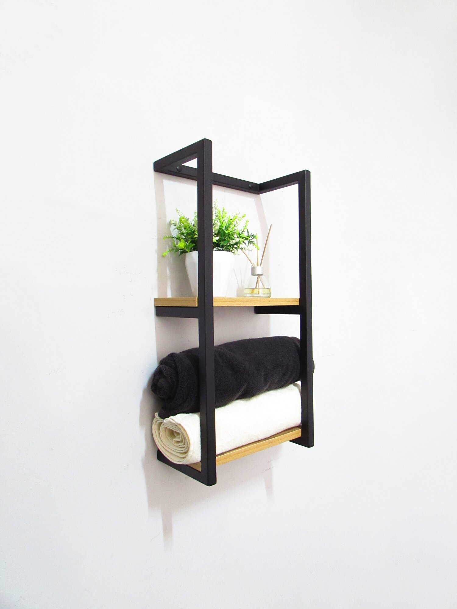 Полка для ванной комнаты "Афина", черный, полки ЛДСП дуб вотан, стиль лофт интересное: