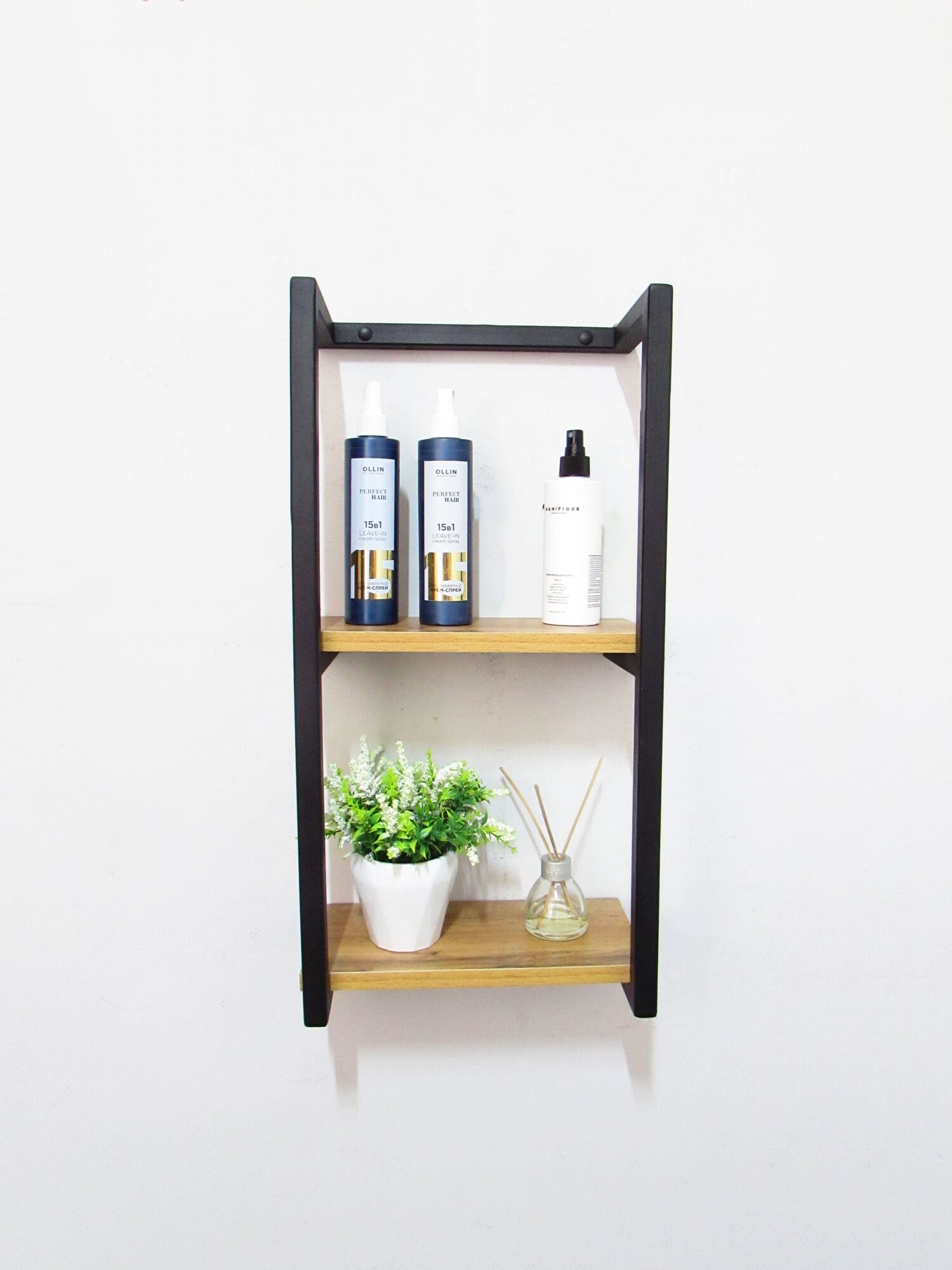 Купить Полка для ванной комнаты "Афина", черный, полки ЛДСП дуб вотан, стиль лофт