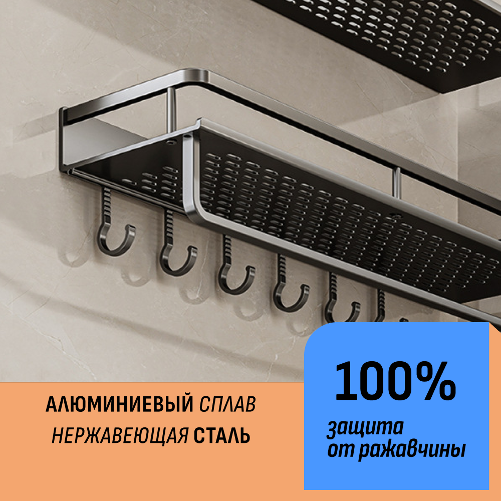 Настенная полка в ванную 50 см крючки полотенцесушитель