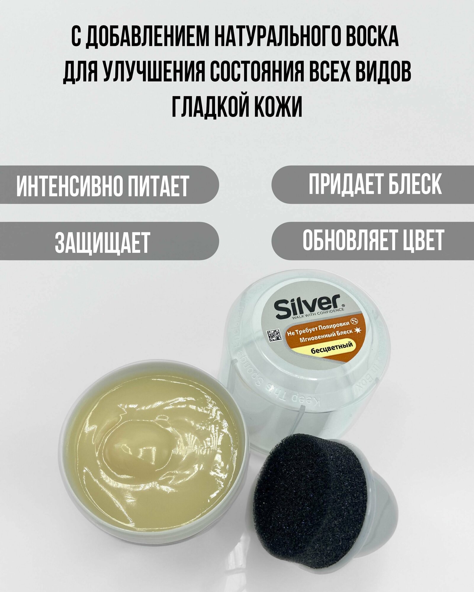 Крем для обуви Silver Express, бесцветный, для гладкой и искусственной кожи, натуральный воск, 50 мл интересное:
