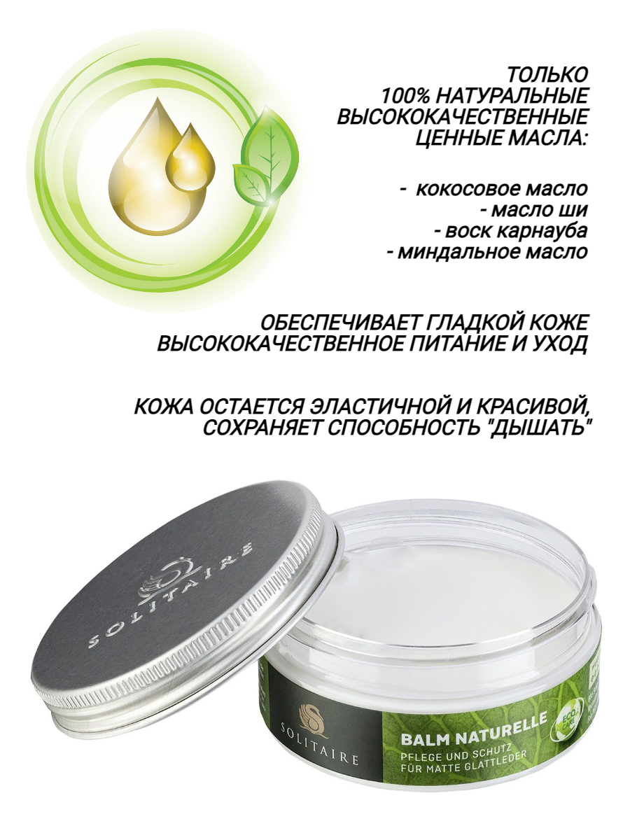Защитный бальзам для обуви SOLITAIRE Balm Naturelle 75ml жир для натуральной гладкой кожи, бесцветный интересное: