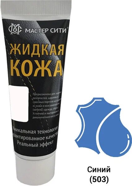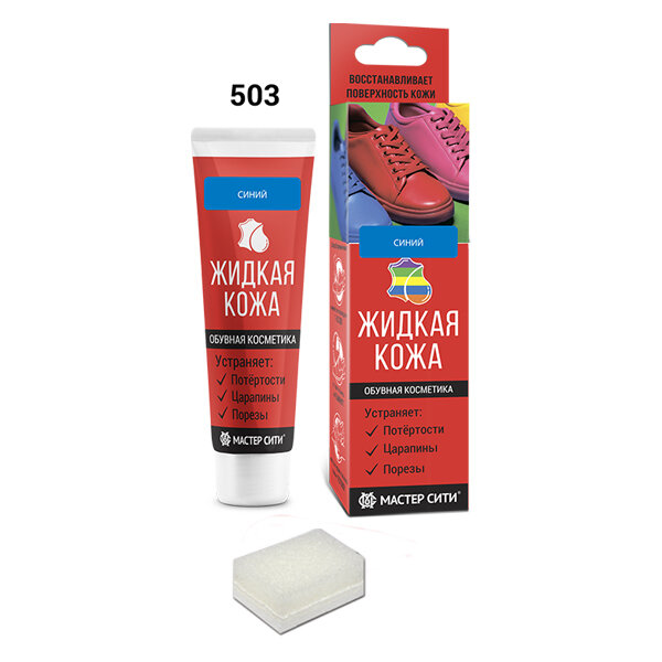 Жидкая кожа "Мастер сити ОК" для ремонта кожи 503 синий, туба 30 мл (красная коробка) со спонжем
