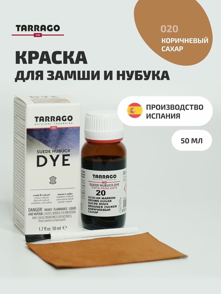 Стойкий краситель для окрашивания и изменения цвета обуви и одежды из замши, нубука, синтетической замши и аналогичных материалов. TARRAGO SUEDE DYE, 50мл, TDC16/020 (BROWN SUGAR) Коричневый сахар