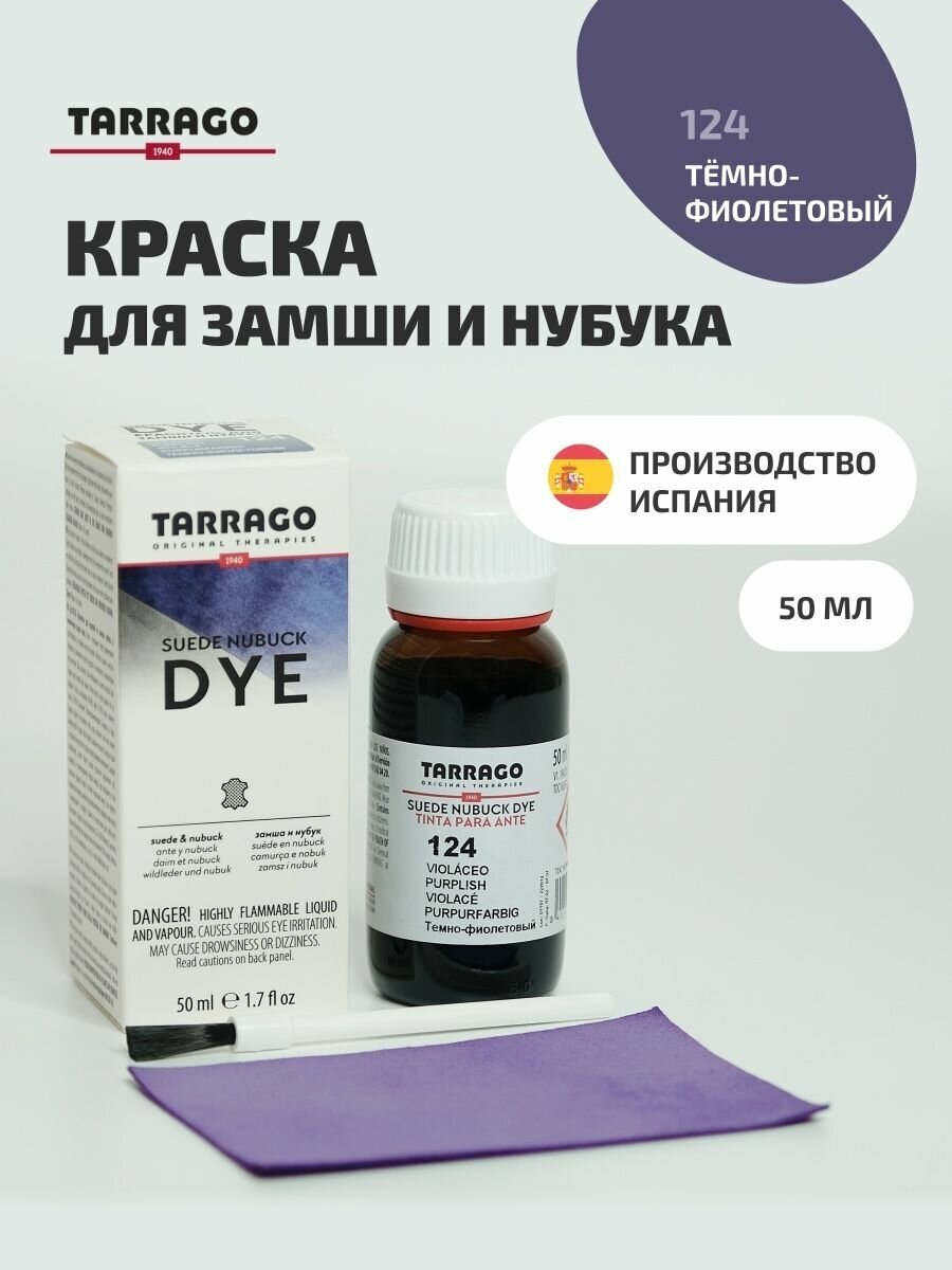 Стойкий краситель для окрашивания и изменения цвета обуви и одежды из замши, нубука, синтетической замши и аналогичных материалов. TARRAGO SUEDE DYE, 50мл, TDC16/124 (PURPLISH) Темно-фиолетовый