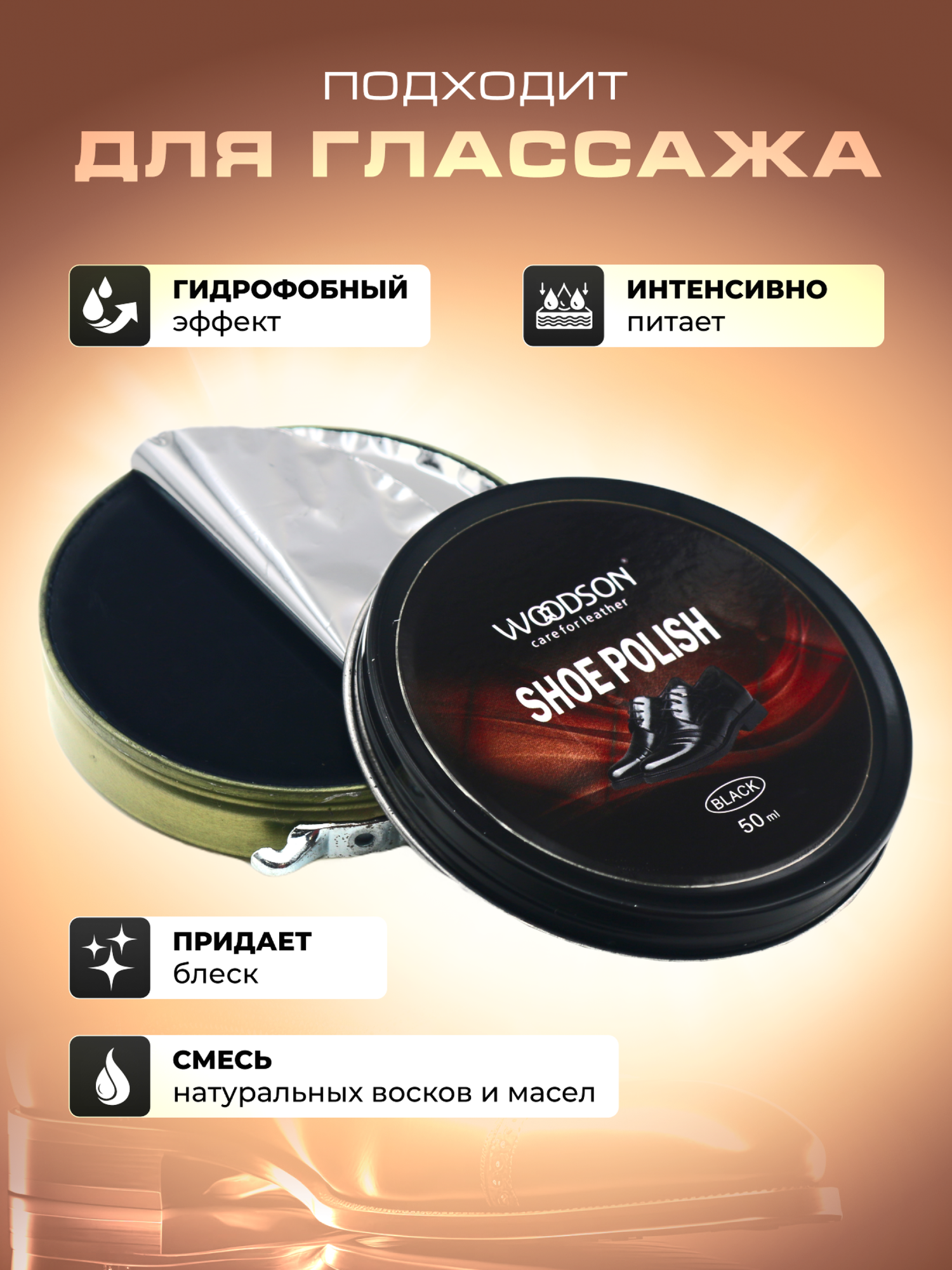Крем для обуви, крем для ухода за обувью WOODSON, водоотталкивающий, 50мл, черный интересное: