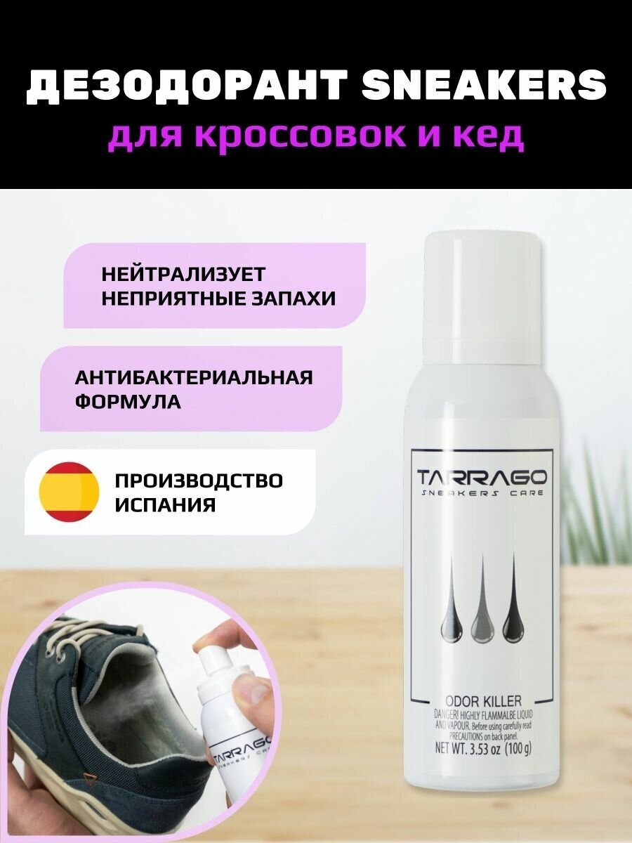 Ниже Вы можете прочитать отзывы на Дезодорант для кроссовок и кед Tarrago SNEAKERS ODOR KILLER, 125 мл, ознакомится с подробными характеристиками, посмотреть интересные обзоры и фотографии на Дезодорант для кроссовок и кед Tarrago SNEAKERS ODOR KILLER, 125 мл.