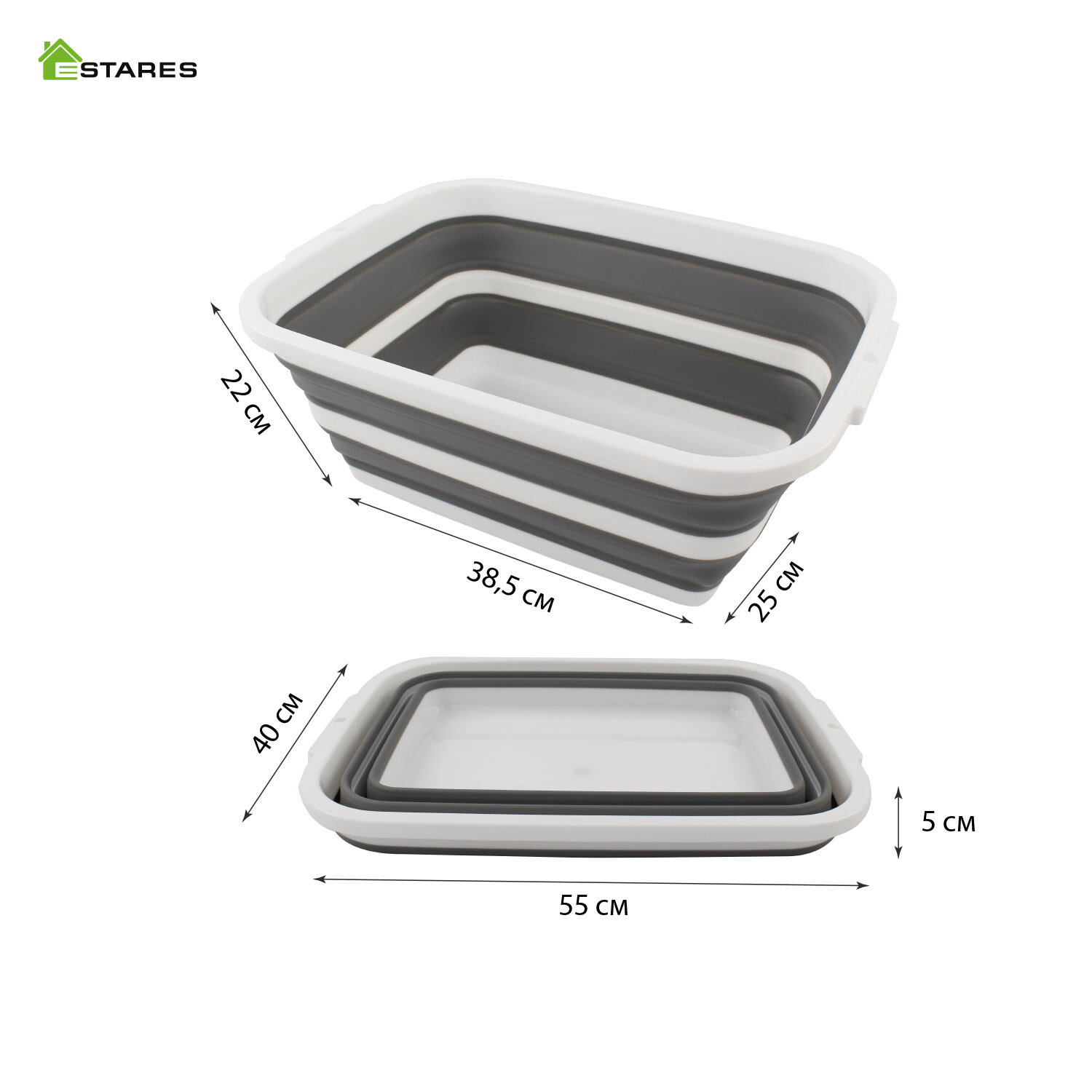 Таз складной силиконовый 18 литров -white/gray- Estares