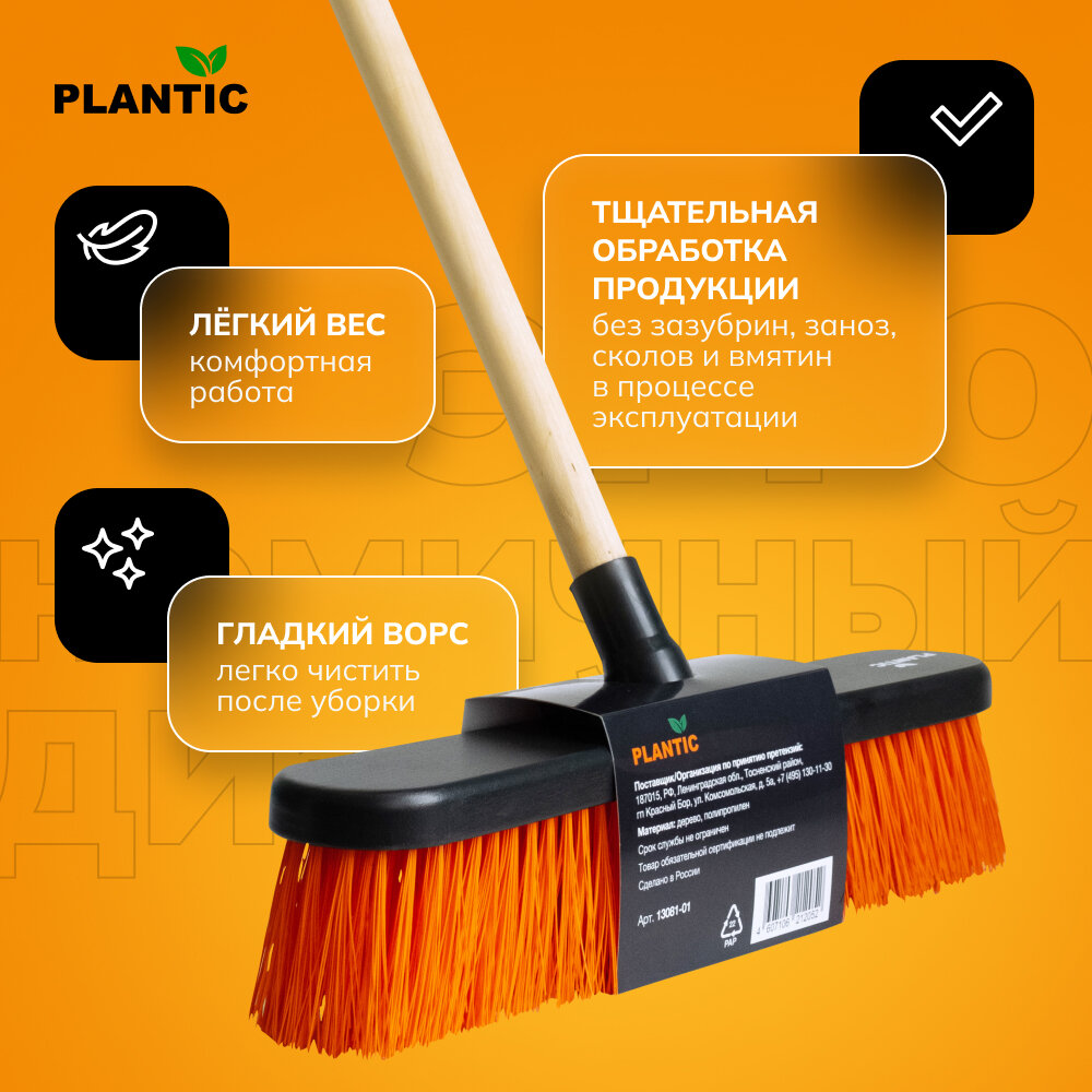 Щетка универсальная Plantic PRO 13080-01 (в собранном виде), 400х70 мм, щетина 0,5 мм, цвет черный/оранжевый
