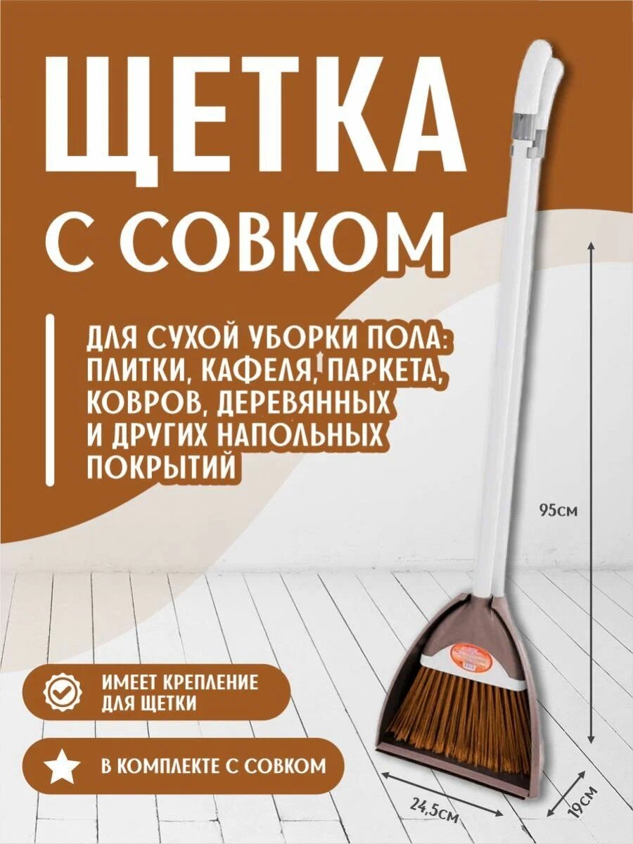СохранитьСовок и щетка elfplast "Тандем" на длинной ручке набор для уборки дома, (серо-коричневый) 145 интересное: