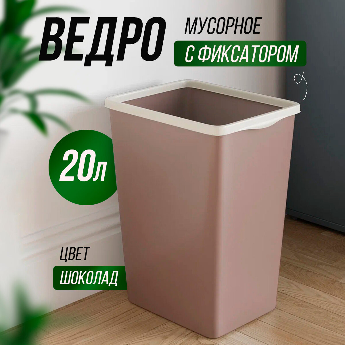 Мусорное ведро с фиксатором бежевого цвета, объем 20л , контейнер для мусора UnitsHome
