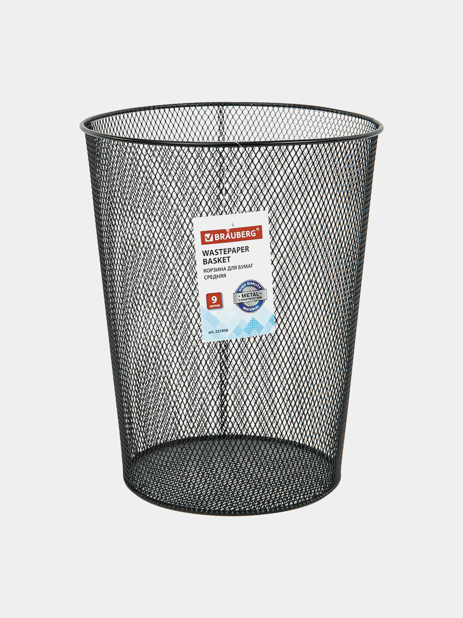 Корзина для бумаг 9л Brauberg Germanium, круглая сетчатая, металл, черная (231958)