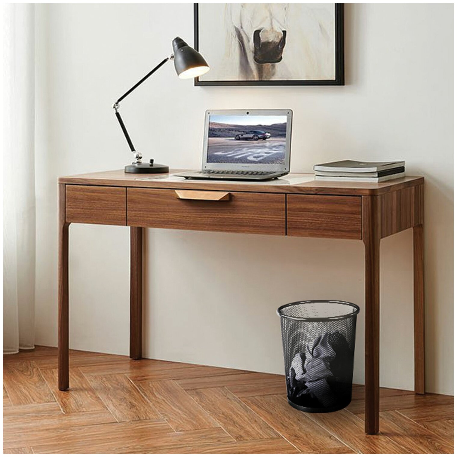 Корзина для бумаг Brauberg "Germanium", средняя, металлическая, 9 литров, черная (231958)