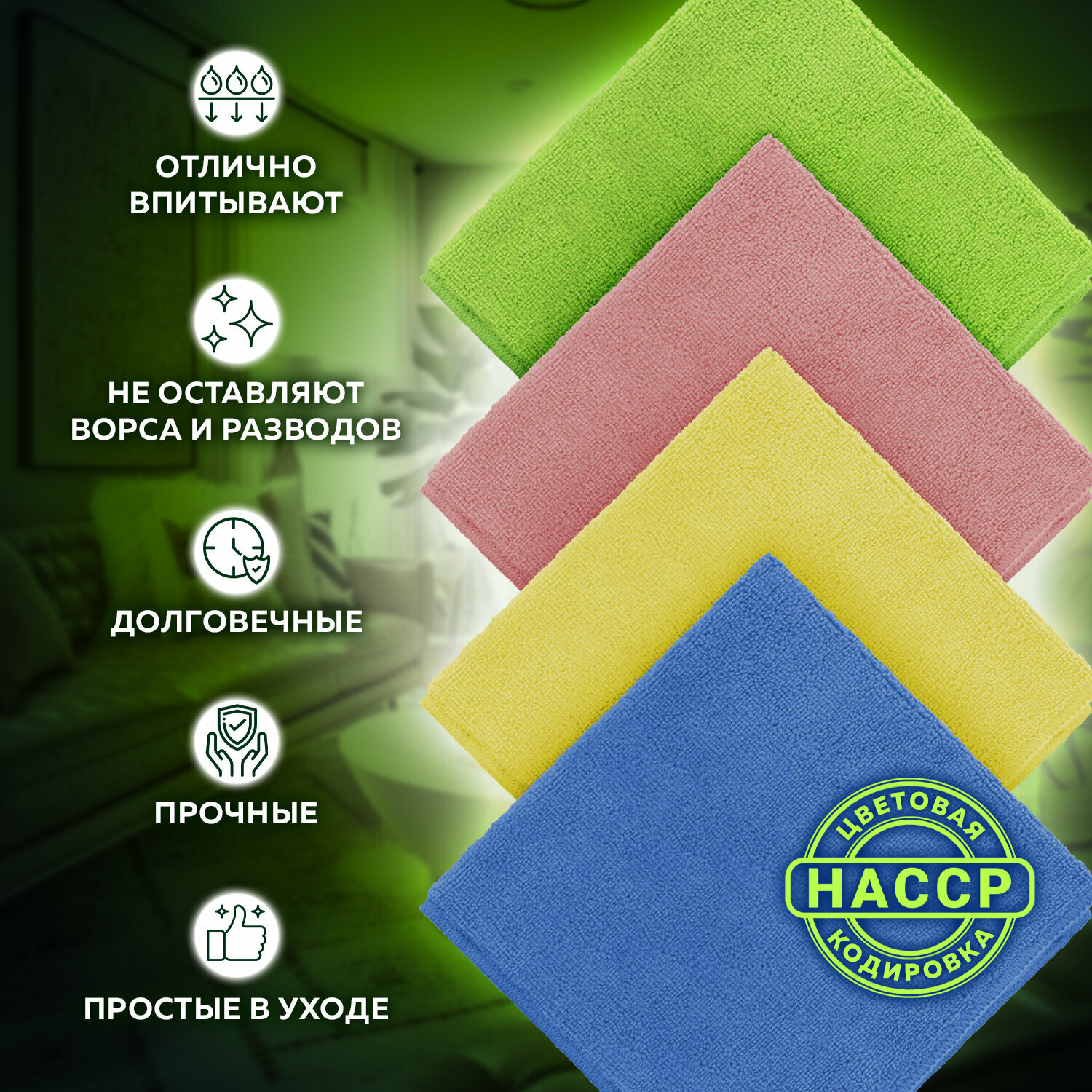 Салфетка хозяйственная Лайма Home Ultrasonic HACCP (30х30см) микрофибра, набор 8шт. (608225)