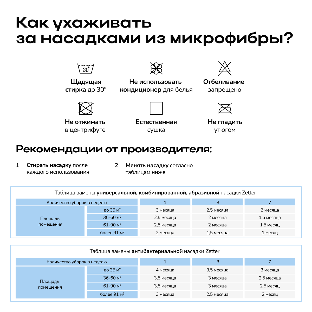 Насадка для швабры Zetter M, микрофибра, 33х12 см, 2 шт. интересное: