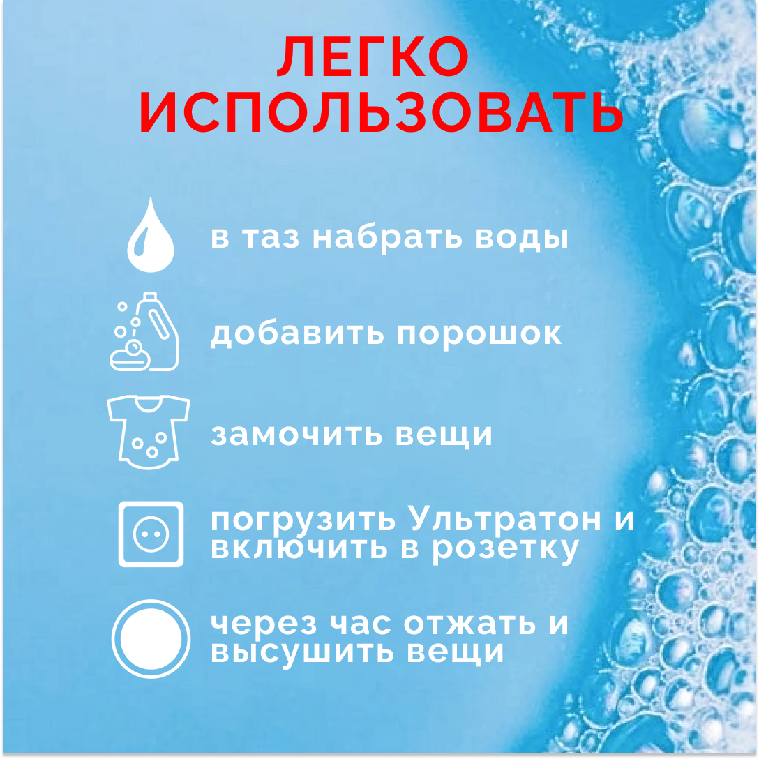 | Дополнительная информация | Ультразвуковую стиральную машинку можно использовать не только по прямому назначению. С ее помощью вы сможете очищать пригоревшую посуду, ювелирные украшения, очки, бритвы, зубные протезы и многое другое. |