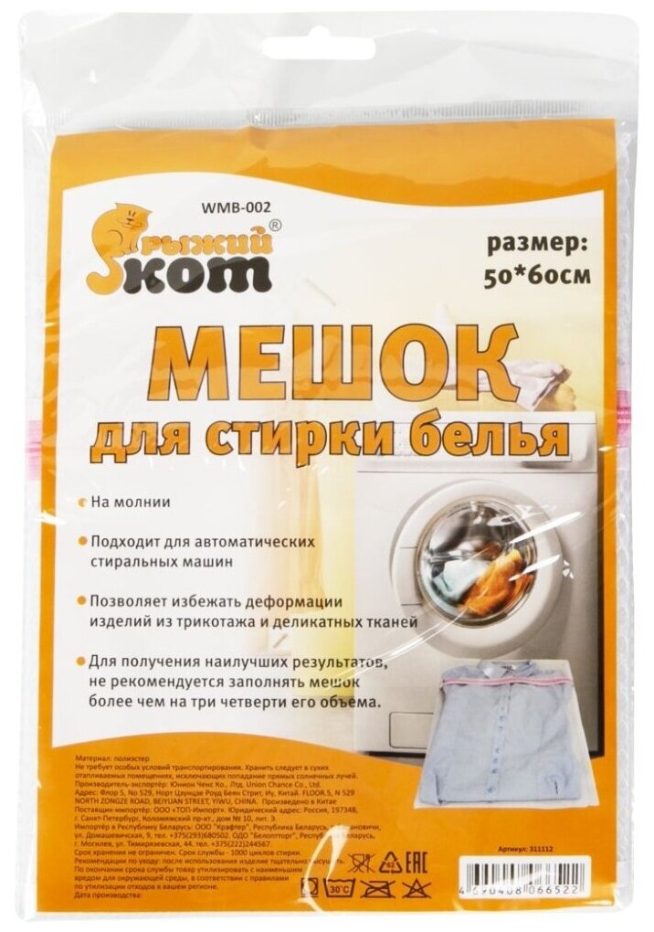 | Подробная комплектация | Мешок для стирки белья РЫЖИЙ КОТ, 50х60 см |