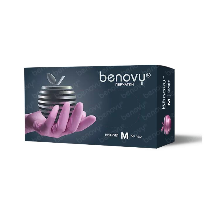 Перчатки медицинские Benovy, нитриловые, неопудренные, нестерильные, размер M, 50 пар, сиреневые