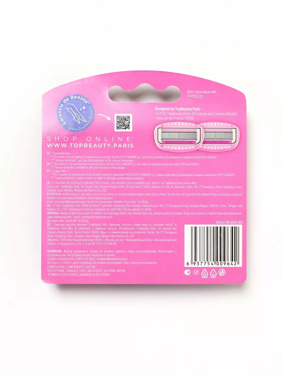 Кассеты для бритвенных станков TopBeauty Paris Cменные женские, 5 лезвий, совместимы с Gillette Venus, 2 шт