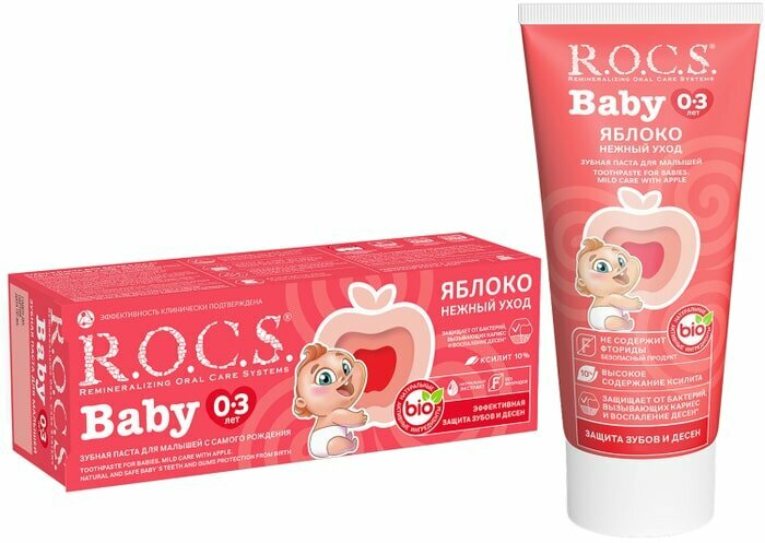Зубная паста R.O.C.S. Baby Нежный уход, яблоко, 0-3 лет, 45 мл, 45 г интересное: