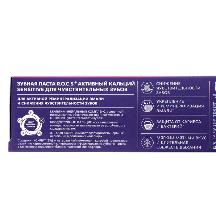 Зубная паста R.O.C.S. Sensitive Активный кальций, 75 мл, 94 г интересное: