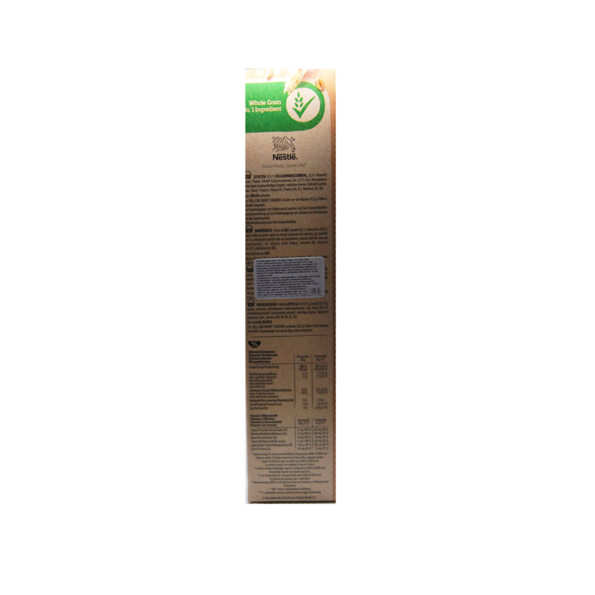 | Состав | Смесь цельнозерновой муки (49%) (кукурузной и пшеничной) / добавленных сахаров (сахар / глюкозный сироп и карамелизованный сахарный сироп) / кукурузного крахмала / какао (4,7%) / кукурузной крупы / растительного масла / натуральных ароматизаторов / йодированной соли / пищевой соды и смеси токоферолов. Витамины и минералы: витамин В1 / витамин В2 / витамин В3 / витамин В5 / витамин В6 / карбонат кальция / железо / цинк / магний. |