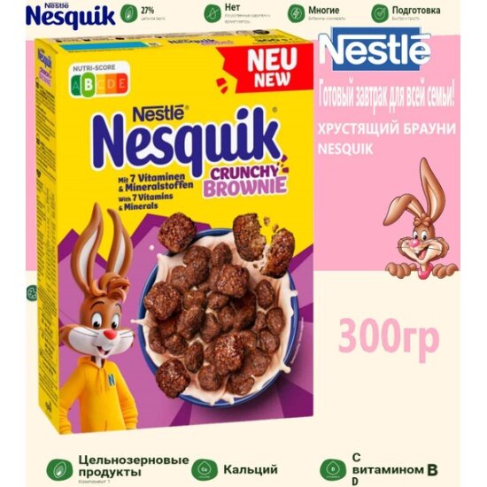 Ниже Вы можете прочитать отзывы на Сухой завтрак Nesquik Crunchy Brownie хрустящий шоколад 300 г, ознакомится с подробными характеристиками, посмотреть интересные обзоры и фотографии на Сухой завтрак Nesquik Crunchy Brownie хрустящий шоколад 300 г.