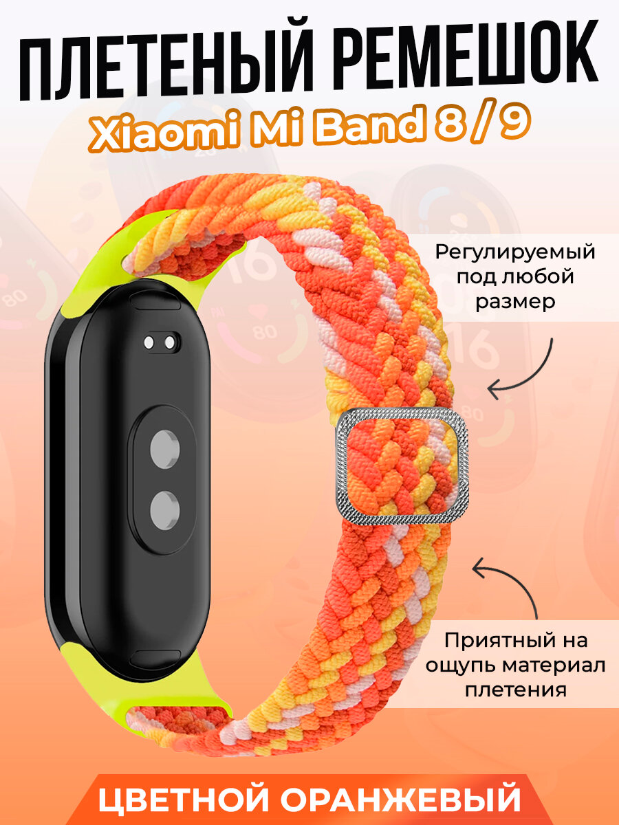 Плетеный ремешок для Xiaomi Mi Band 8/ 9/ 9 NFC, регулируемый под любой размер, цветной оранжевый