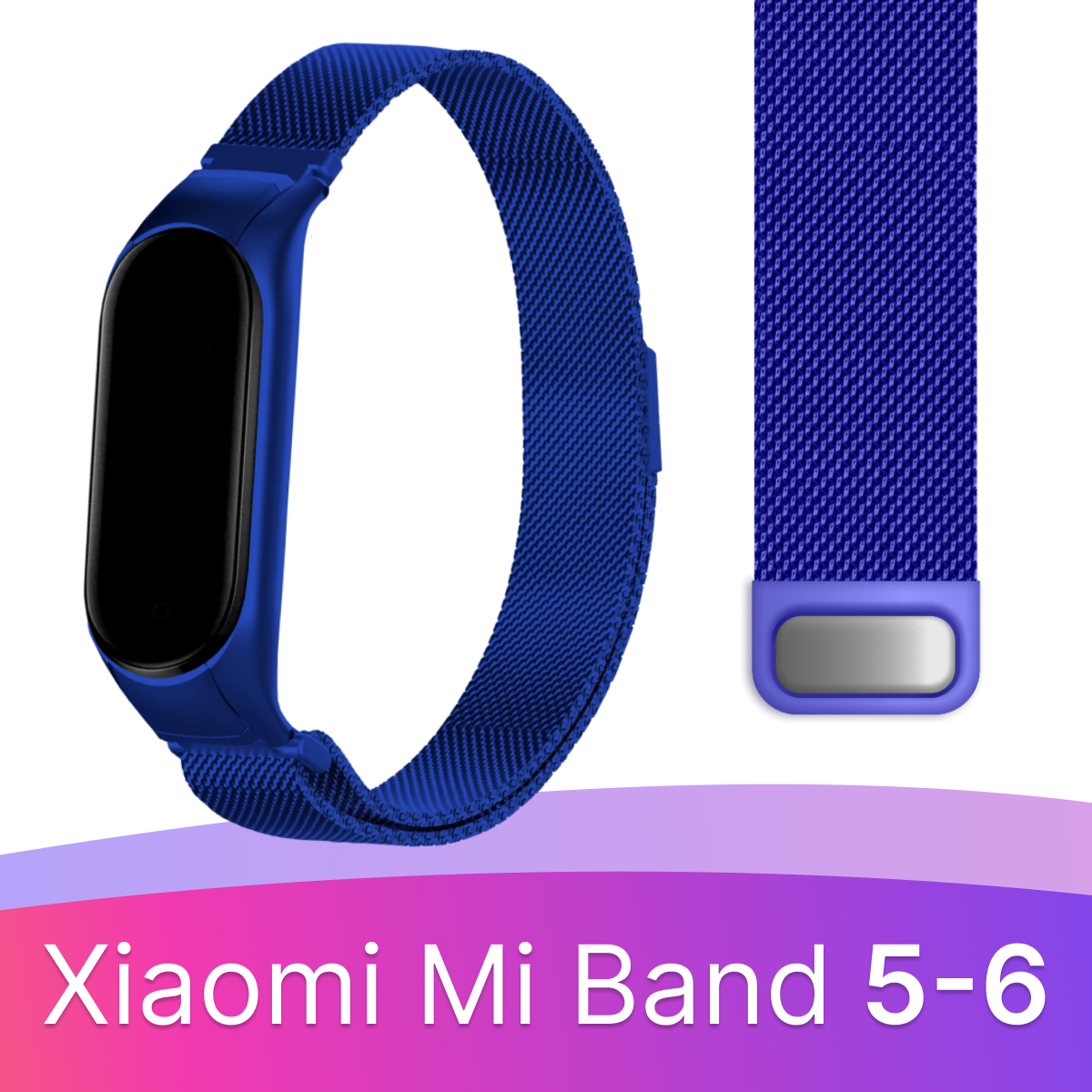 Ремешок миланская петля для смарт часов Xiaomi Mi Band 5, 6 / Металлический браслет (milanese loop) для фитнес трекера Сяоми Ми Бэнд 5, 6 / Синий