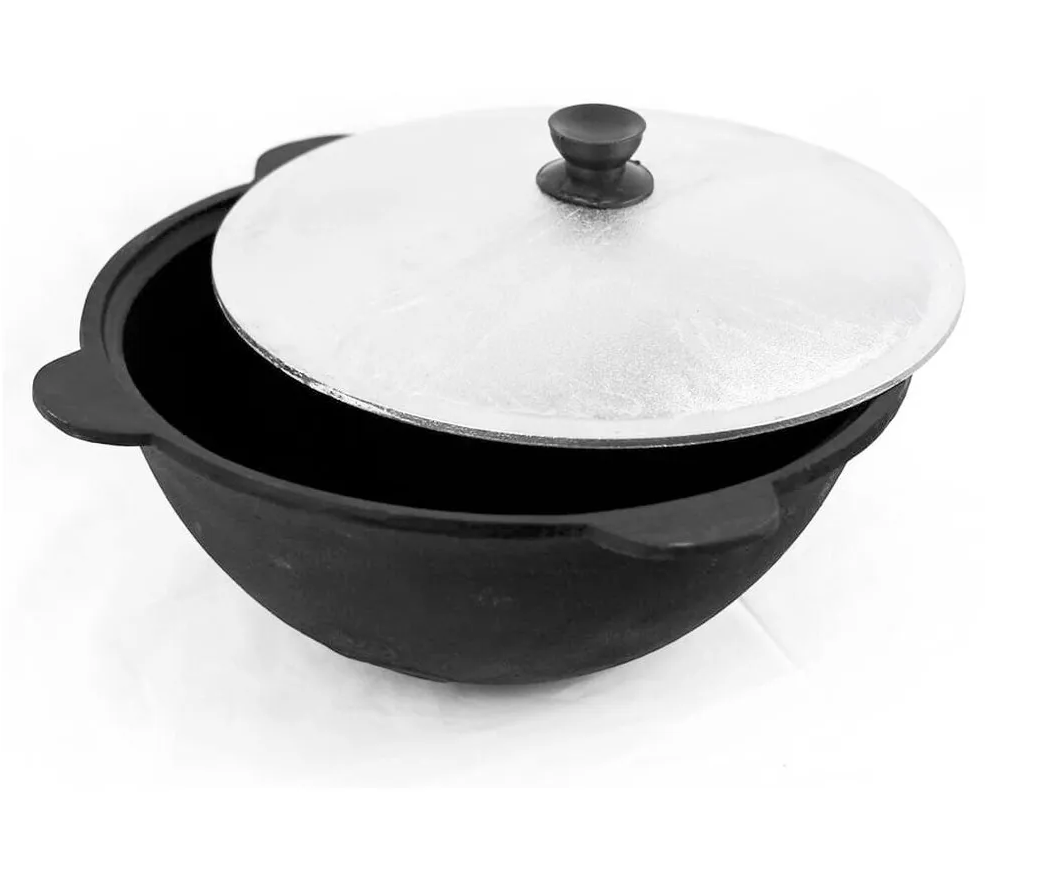 Казан чугунный Наманган узбекский 8 л (круглое дно) с алюминиевой крышкой, черный интересное: