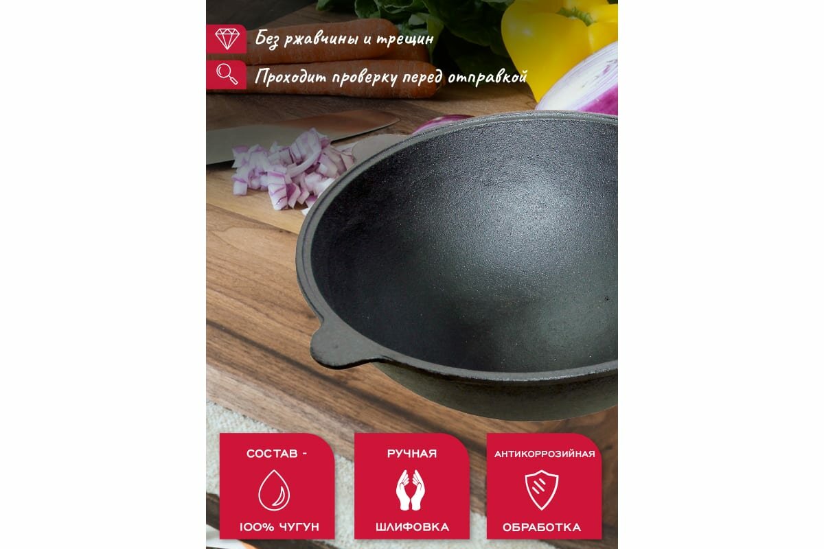 | Дополнительная информация | Комплектация: Казан, Крышка с ручкой, Крышка-сковорода чугунная, Коробка, Инструкция |
