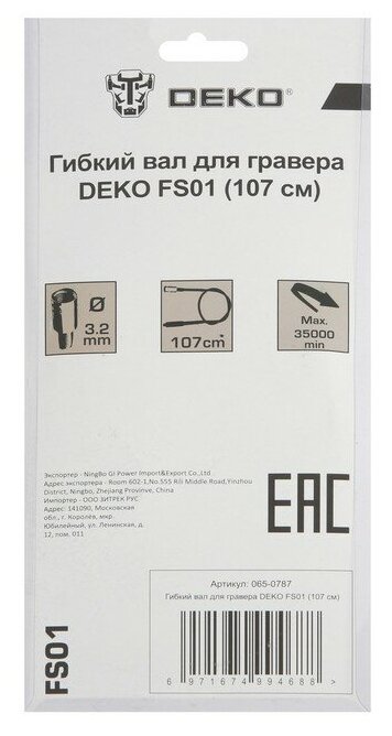 Deko Гибкий вал для гравера FS01 065-0787 .