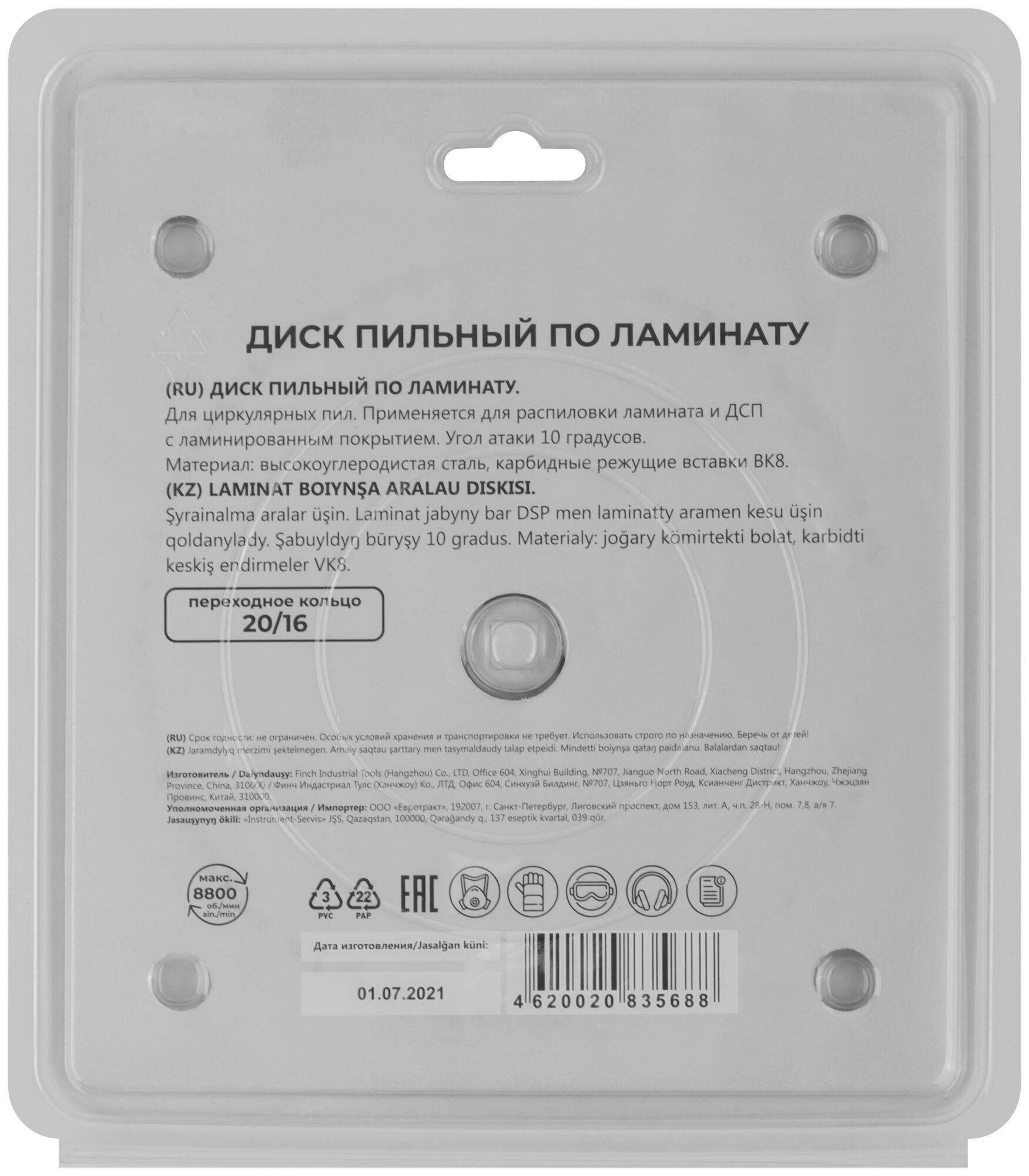 Диск пильный по ламинату 185 х 30 х 48T + 2 кольца: 30/20 и 20/16 мм зубья твердосплавные ВК8 карбид вольфрама угол 10 для циркулярной пилы