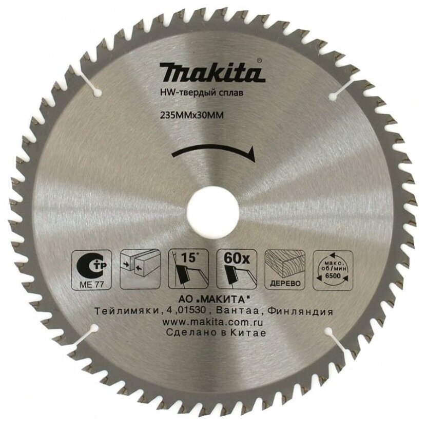 Диск пильный 235 х 2.5 х 30 мм, 60 зубьев, Makita Standart, D-51471 интересное:
