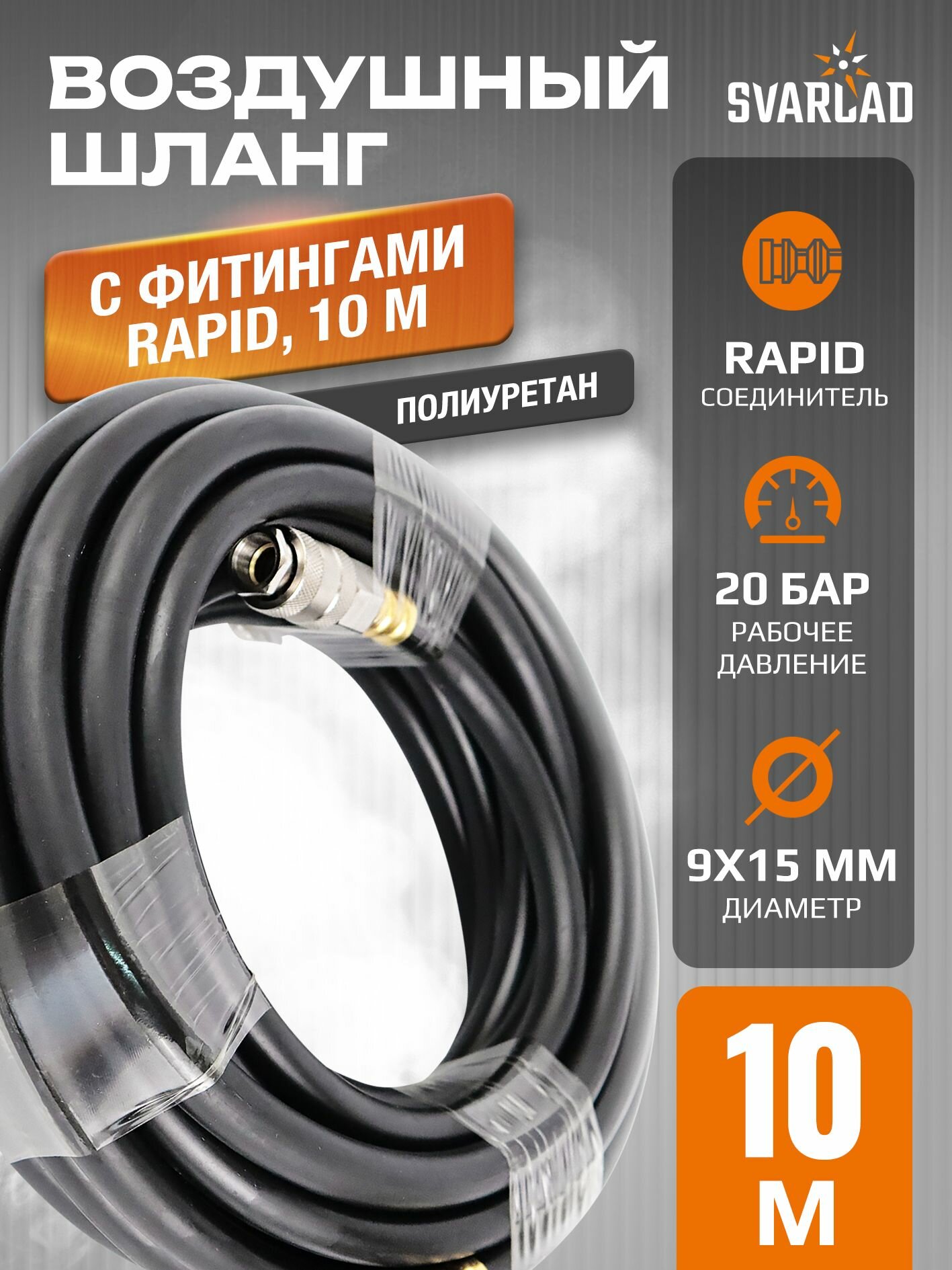 Резиновый маслостойкий воздушный шланг с фитингами RAPID, 20 бар, 15Х9 мм, 10 м. интересное: