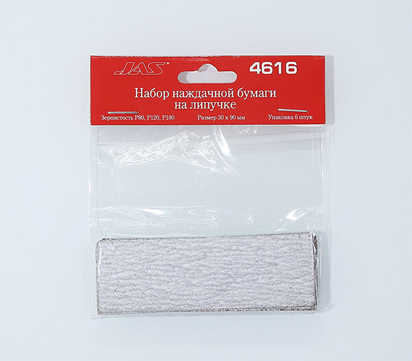 Набор наждачной бумаги на липучке P80, P120, P180 30x90 мм 6 шт., JAS-4616