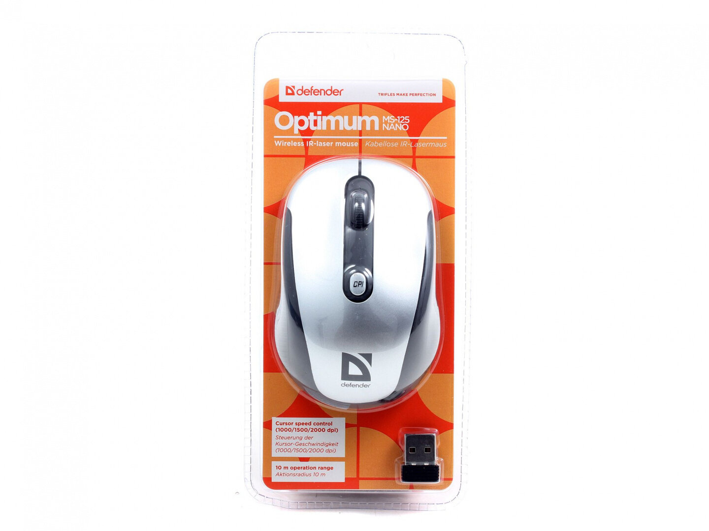 Мышь беспроводная Defender Optimum MS-125 Nano Silver-Black USB, 2000 dpi, USB