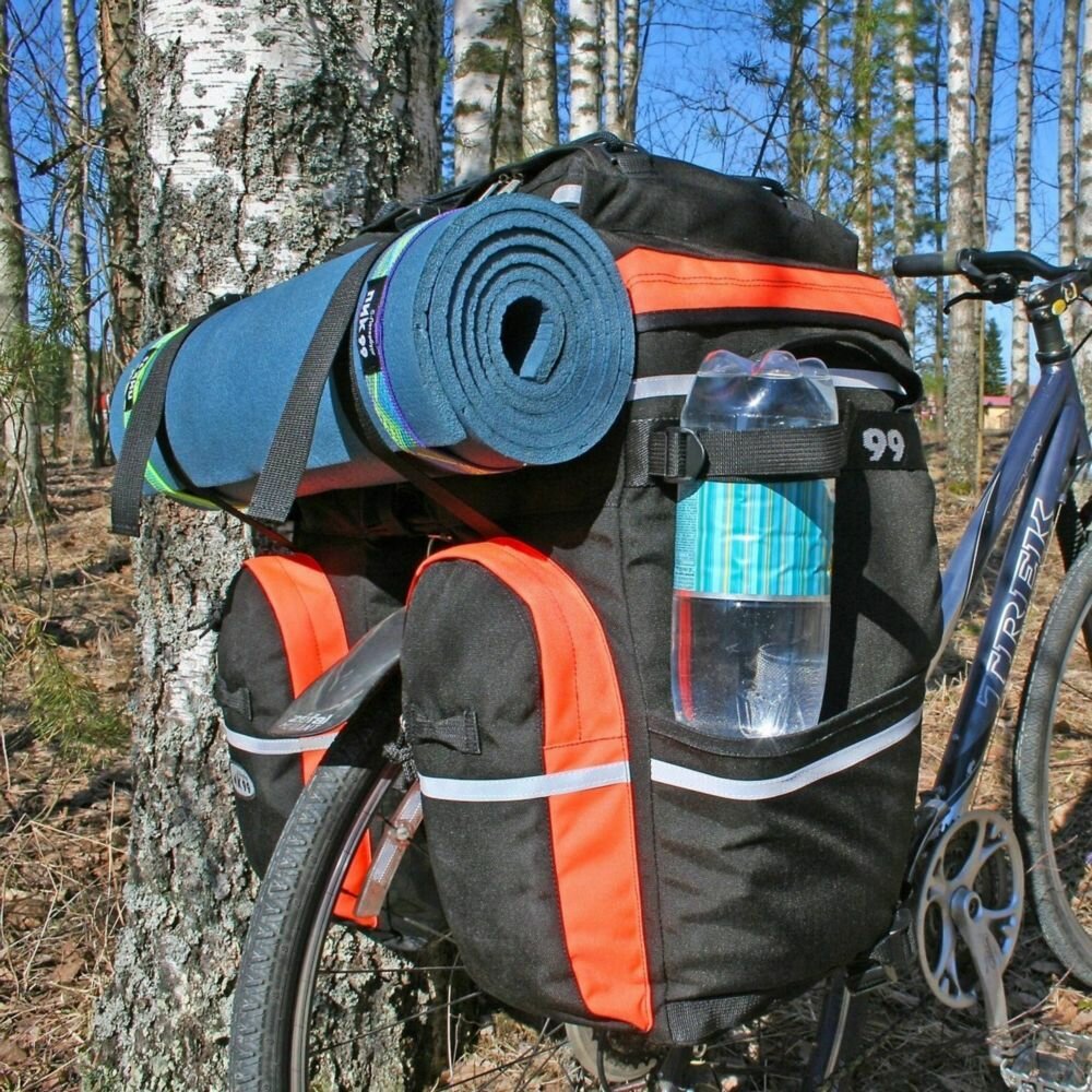 Велосумка ПИК-99 ТРЕК-62-О, велобаул, сумка на багажник, для начинающих велотуристов, черный + оранжевый