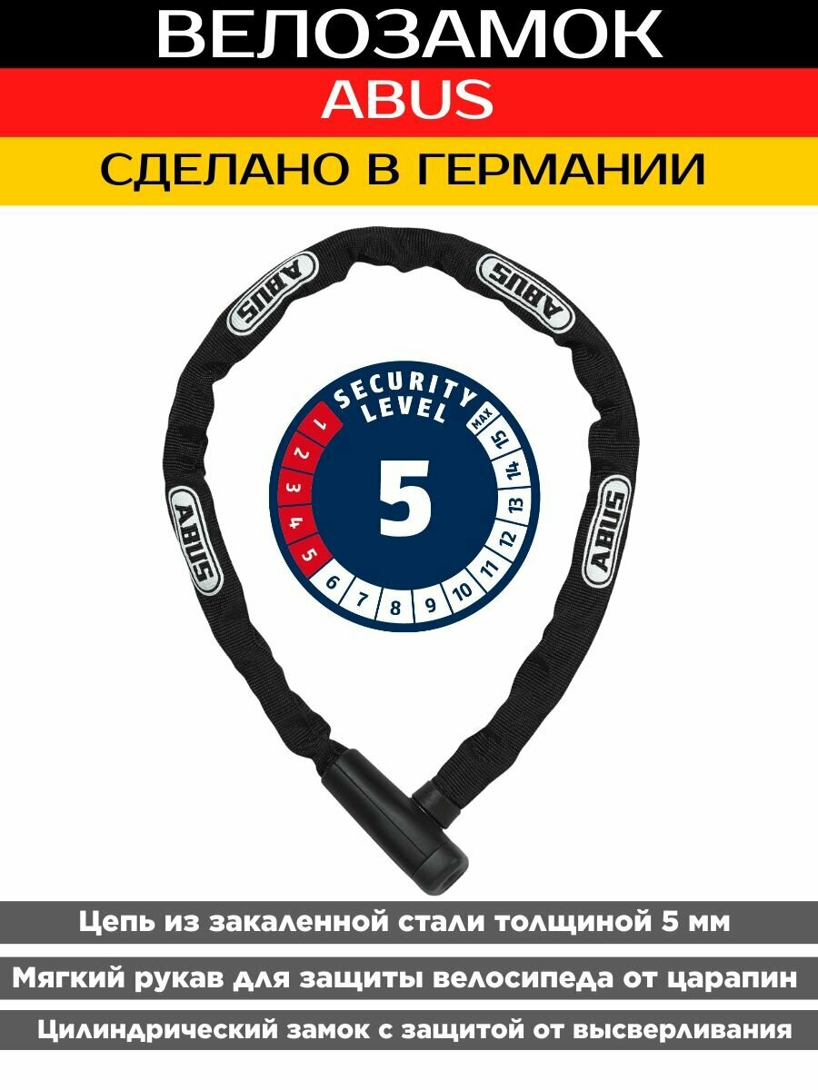 Велозамок цепь с ключом ABUS 5805K/75см black интересное: