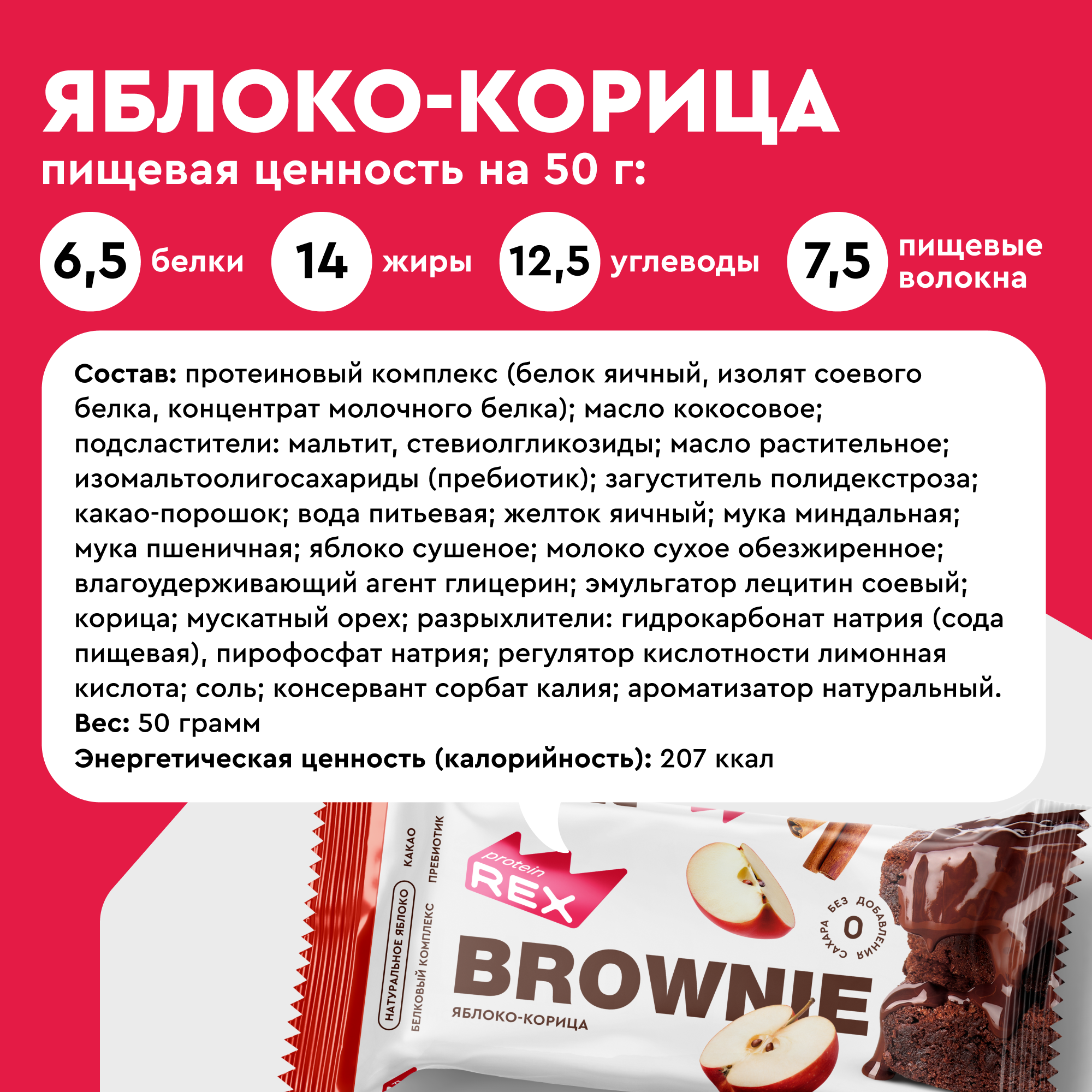Протеиновое печенье без сахара Брауни ProteinRex Яблоко-корица 12 шт х 50 г, спортивное питание