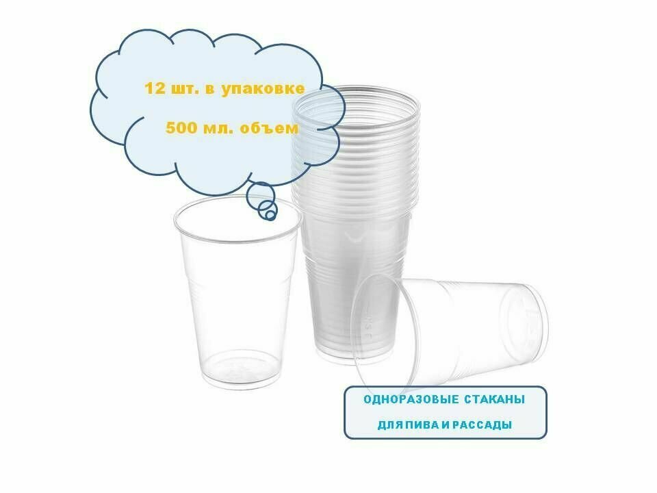 Мистерия Стаканы одноразовые, 500 мл, 12 шт., прозрачные интересное: