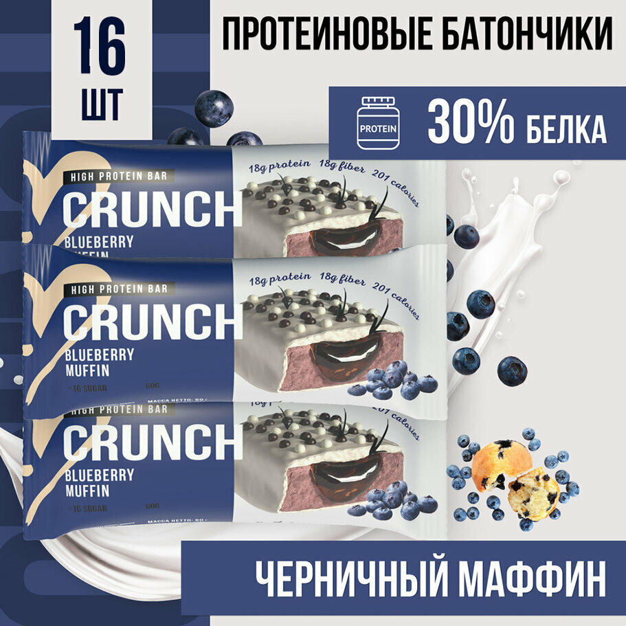 Купить Протеиновый батончик BOOTYBAR Crunch, Черничный маффин, 16 шт по 60 г