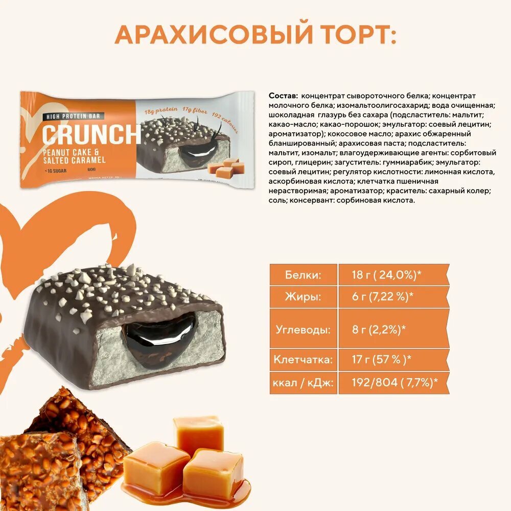 BOOTYBAR Crunch 60 г (коробка 16шт) (Peanut cake & salted caramel)
