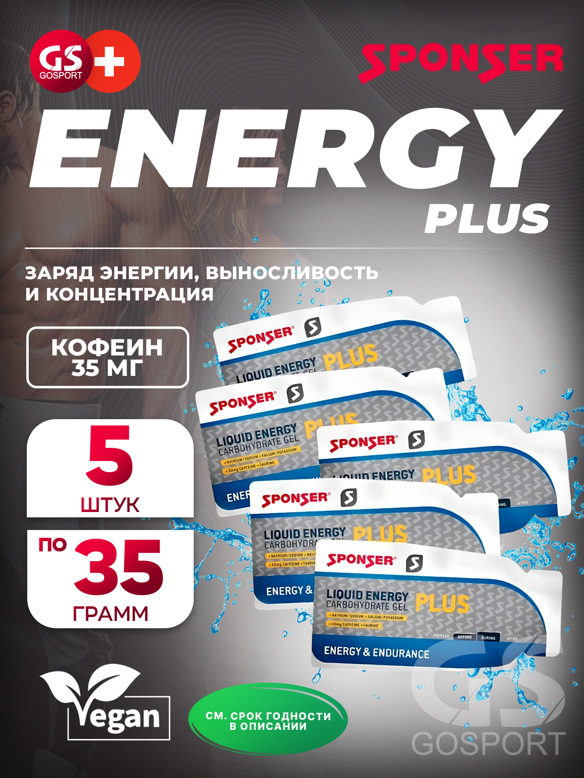 Купить Гель питьевой SPONSER LIQUID ENERGY PLUS 25 mg caffeine 5 саше x 35 г, Натуральный
