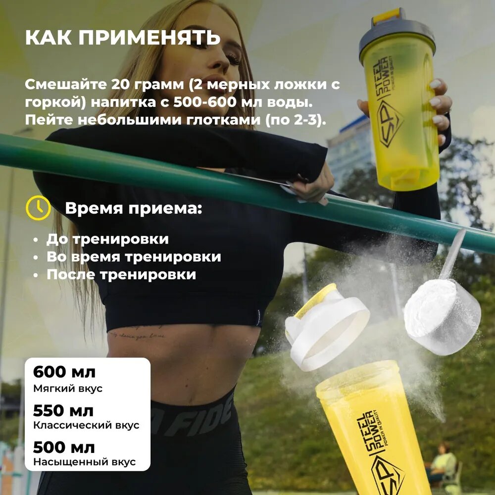 | Дополнительная информация | В качестве дополнения к основному рациону. Смешайте 20 грамм (2 мерных ложки с горкой) напитка с 500-600 мл воды. Пейте небольшими глотками (по 2-3) перед тренировкой (на разминке), во время тренировки и после нее, не дожидаясь наступления жажды. |