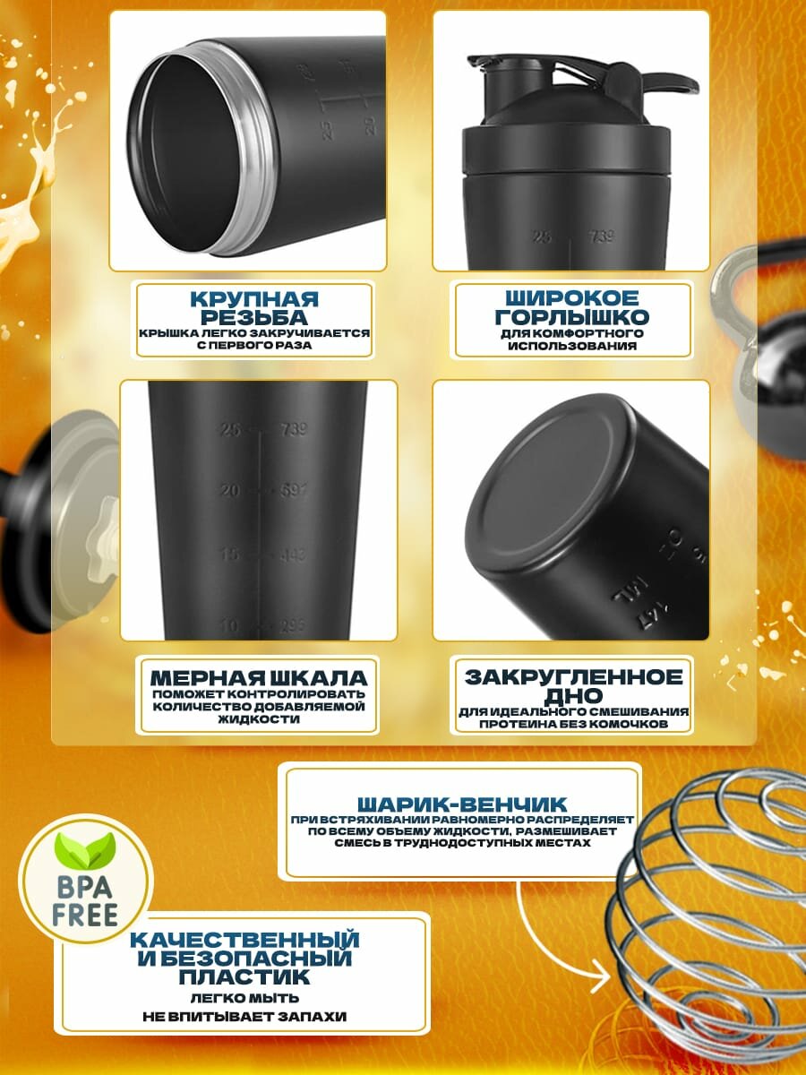 Шейкер спортивный металлический с венчиком стальной для спортивного питания